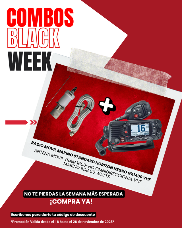 Combo Radio móvil marino Standard Horizon Negro GX1400 VHF + Antena Movil Tram 1600-HC Omnidireccional VHF Marino 6dB 50 Watts está agotado y se enviará tan pronto como vuelva a estar disponible.