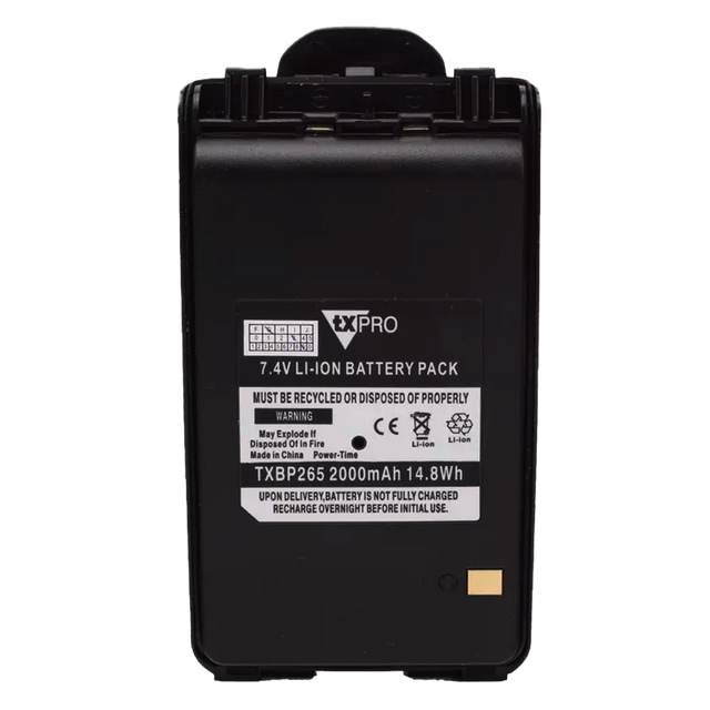 La batería TXPRO TXBP265 es un componente diseñado para alimentar radios portátiles Icom, específicamente los modelos IC-F3103, IC-F4103 e IC-F4103DT. Esta batería de iones de litio (Li-Ion) ofrece una capacidad de 2,000 mAh, proporcionando una autonomía prolongada para operaciones continuas.